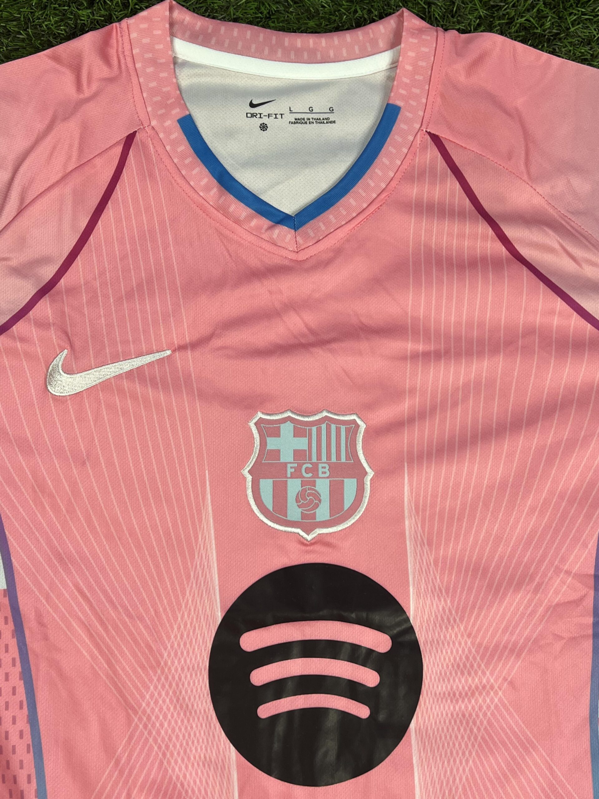 👕 لوگوی بارسلونا و آرم نایکی که با دوخت ظریف و باکیفیت روی لباس گلدوزی شده، حس رسمیتری به این کیت خاص داده؛ نه چاپیه نه اتویی، دقیقاً همون چیزیه که عاشقاش دنبالشن 🎯