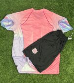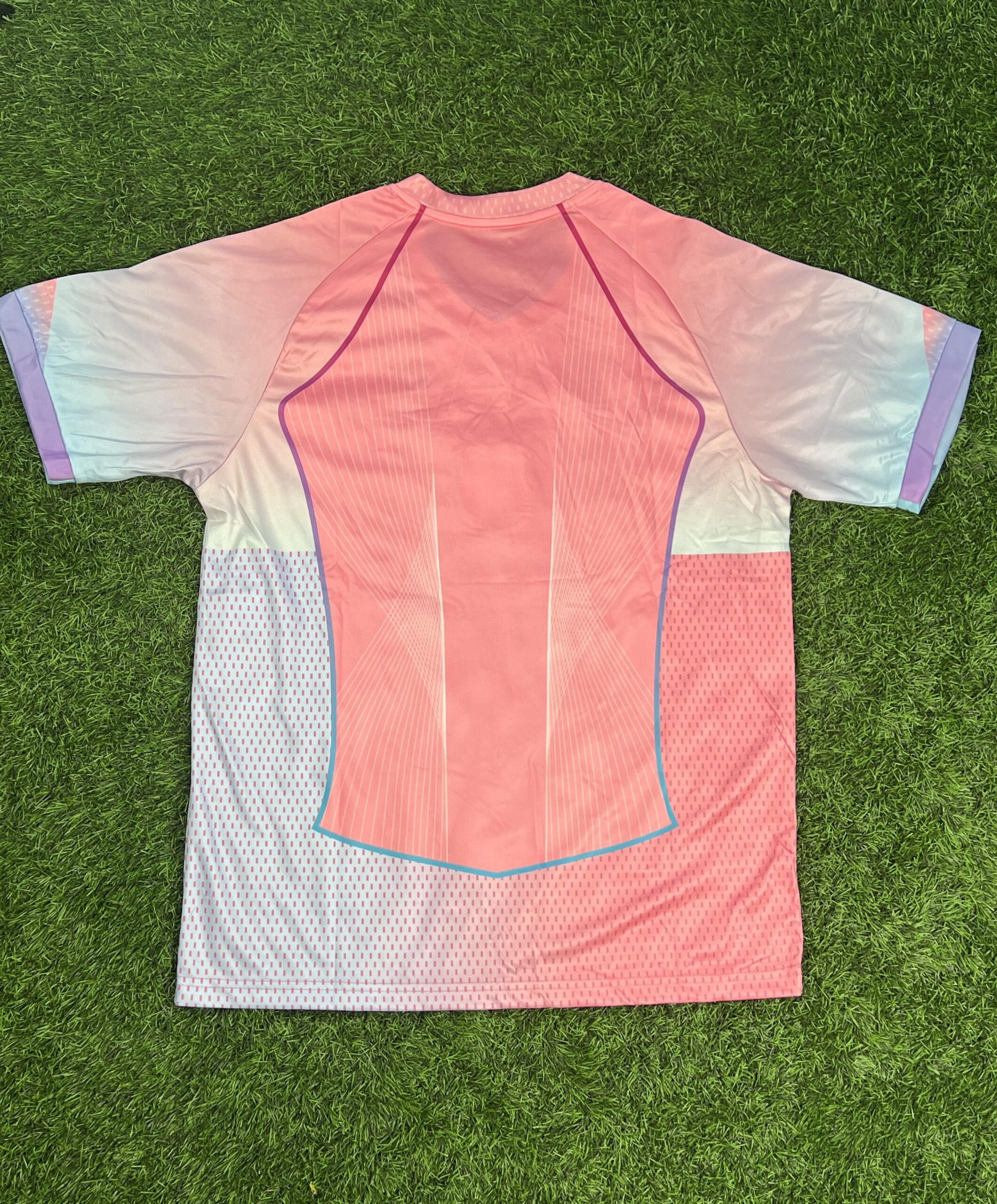 🔷 بخشهای آبی یقه و آستین، تضاد زیبایی با بدنهی صورتی ایجاد کرده و یک تم فانتزی و چشمنواز ساخته که مناسب هوادارهای خوشسلیقهست 💫