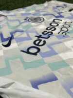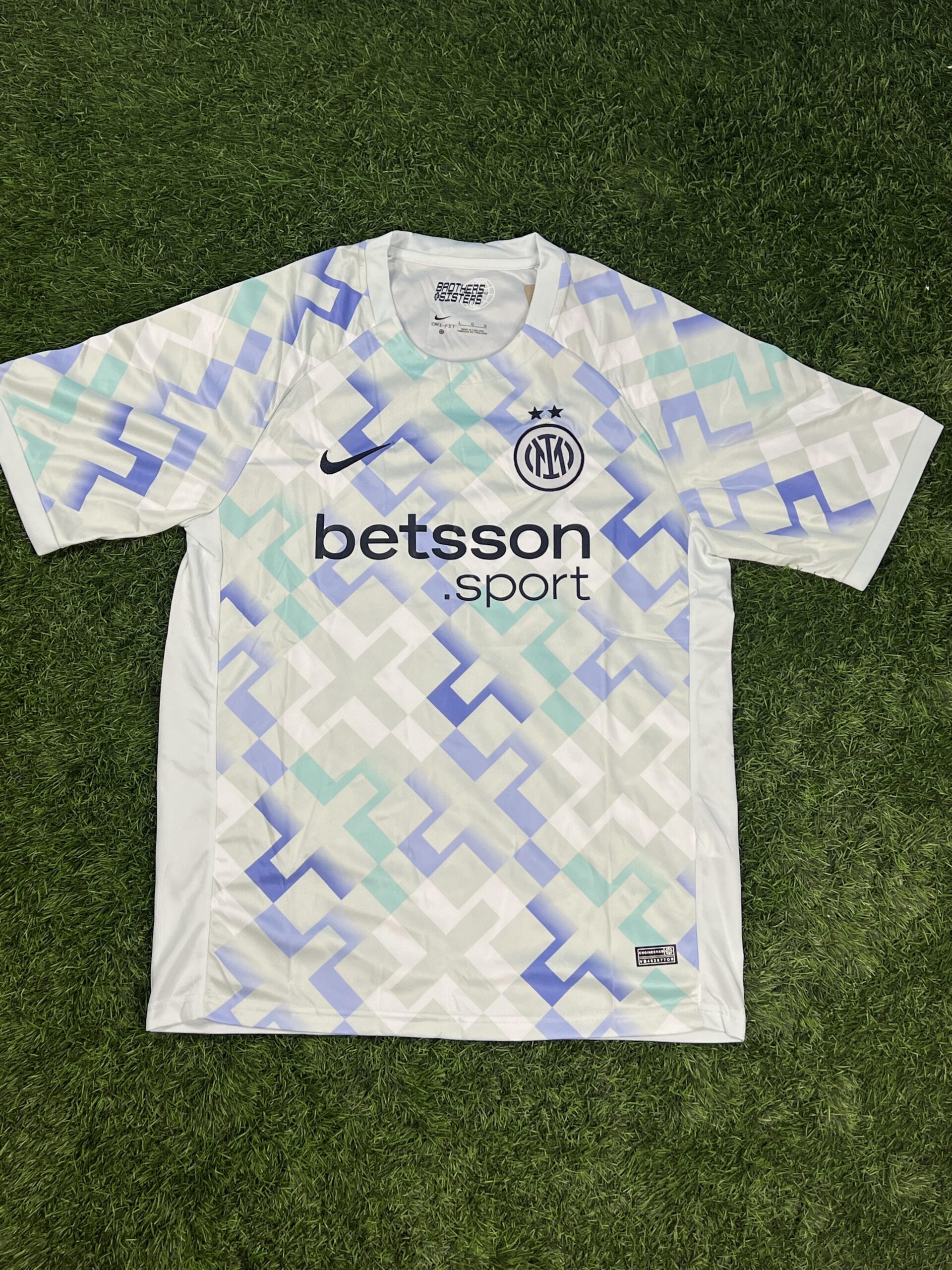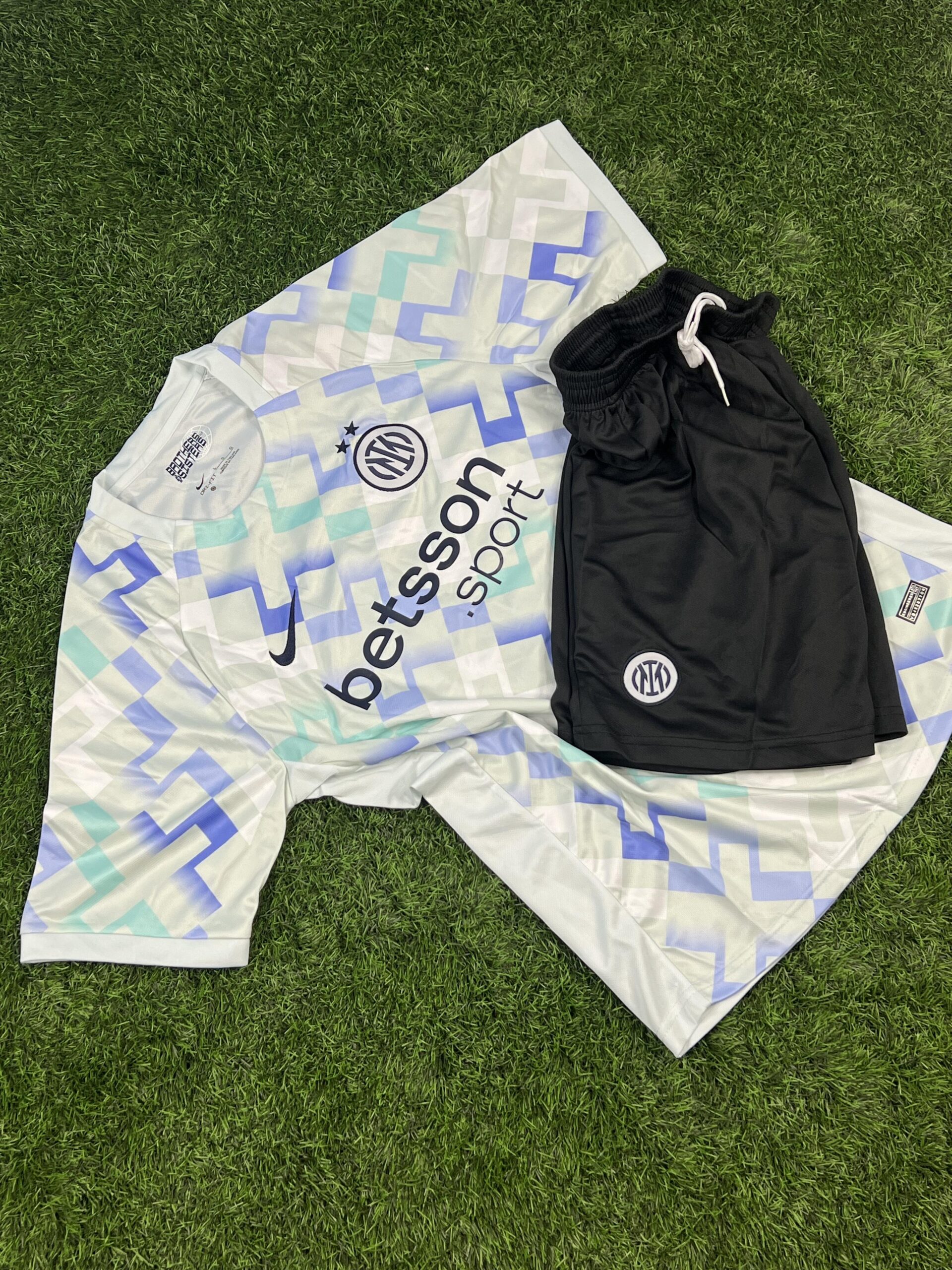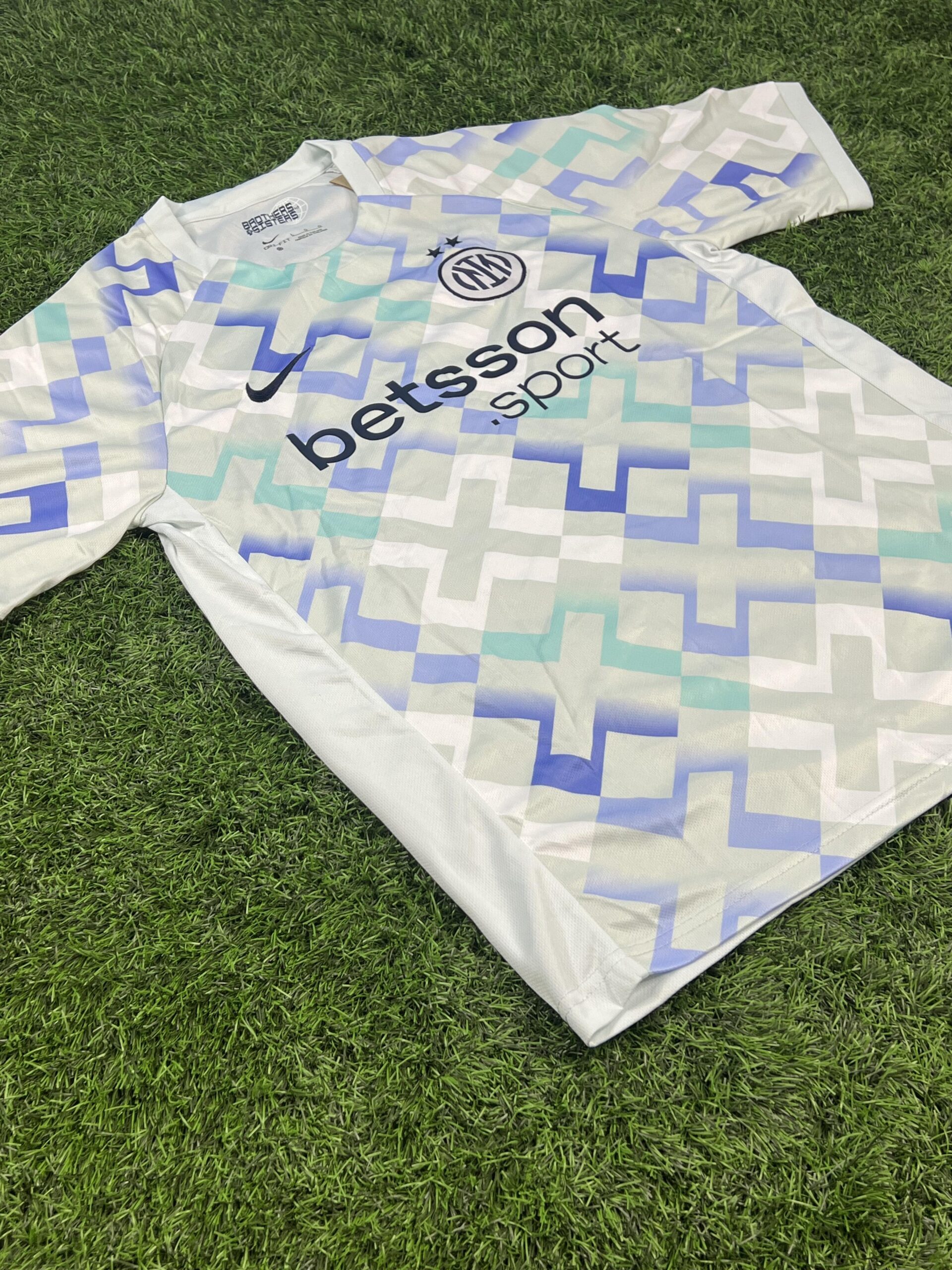 این کیت برای اولین بار اسپانسر جدید باشگاه، betsson.sport، را به نمایش میگذارد. لوگوی این برند با رنگ سرمهای تیره به زیبایی روی پترن گرافیکی پیراهن نشسته است. همچنین، لوگوی باشگاه اینتر با دو ستاره طلایی بالای آن (به افتخار کسب بیستمین اسکودتو) و لوگوی نایکی، همگی به صورت گلدوزی شده با کیفیت بالا روی سینه قرار گرفتهاند.